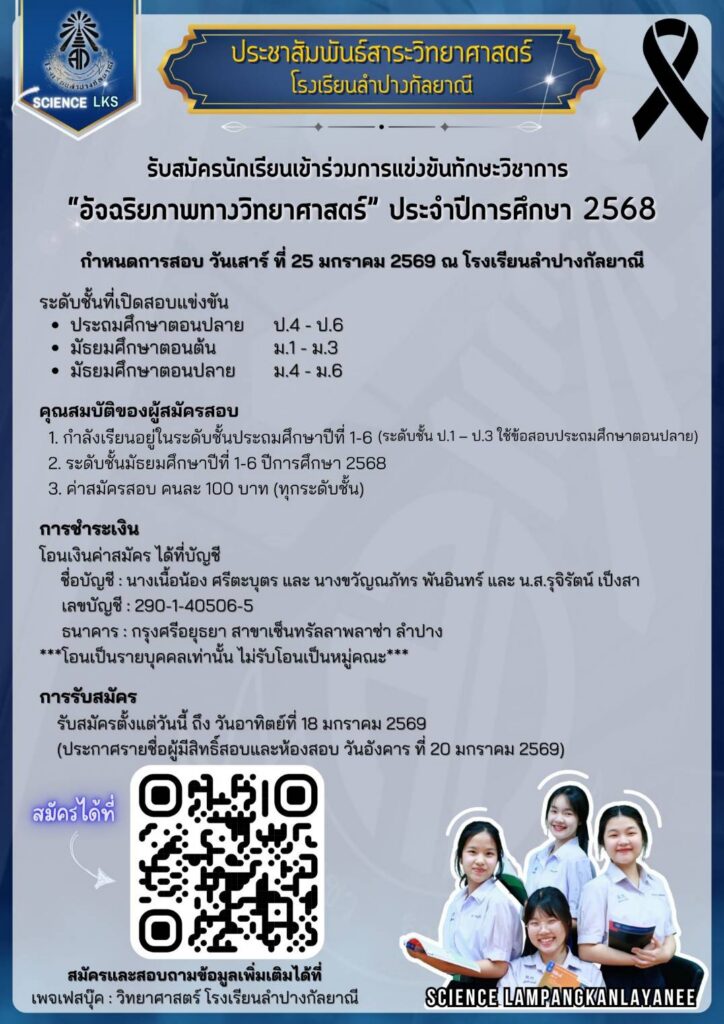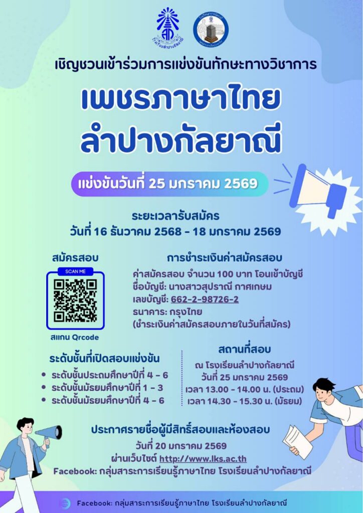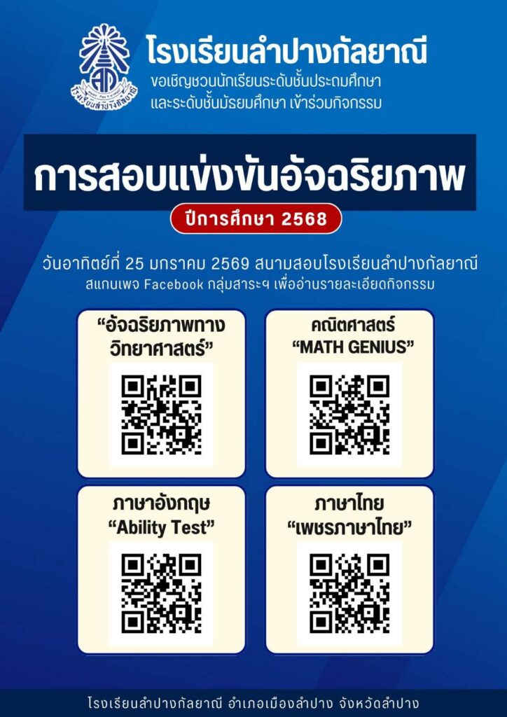 ประกาศโรงเรียนลำปางกัลยาณี เรื่องการจัดการแข่งขันทักษะวิชาการ ประจำปี 2568By admin / 16 December 2025 Powered By EmbedPress จำนวนผู้ชมเว็บไซต์: 731